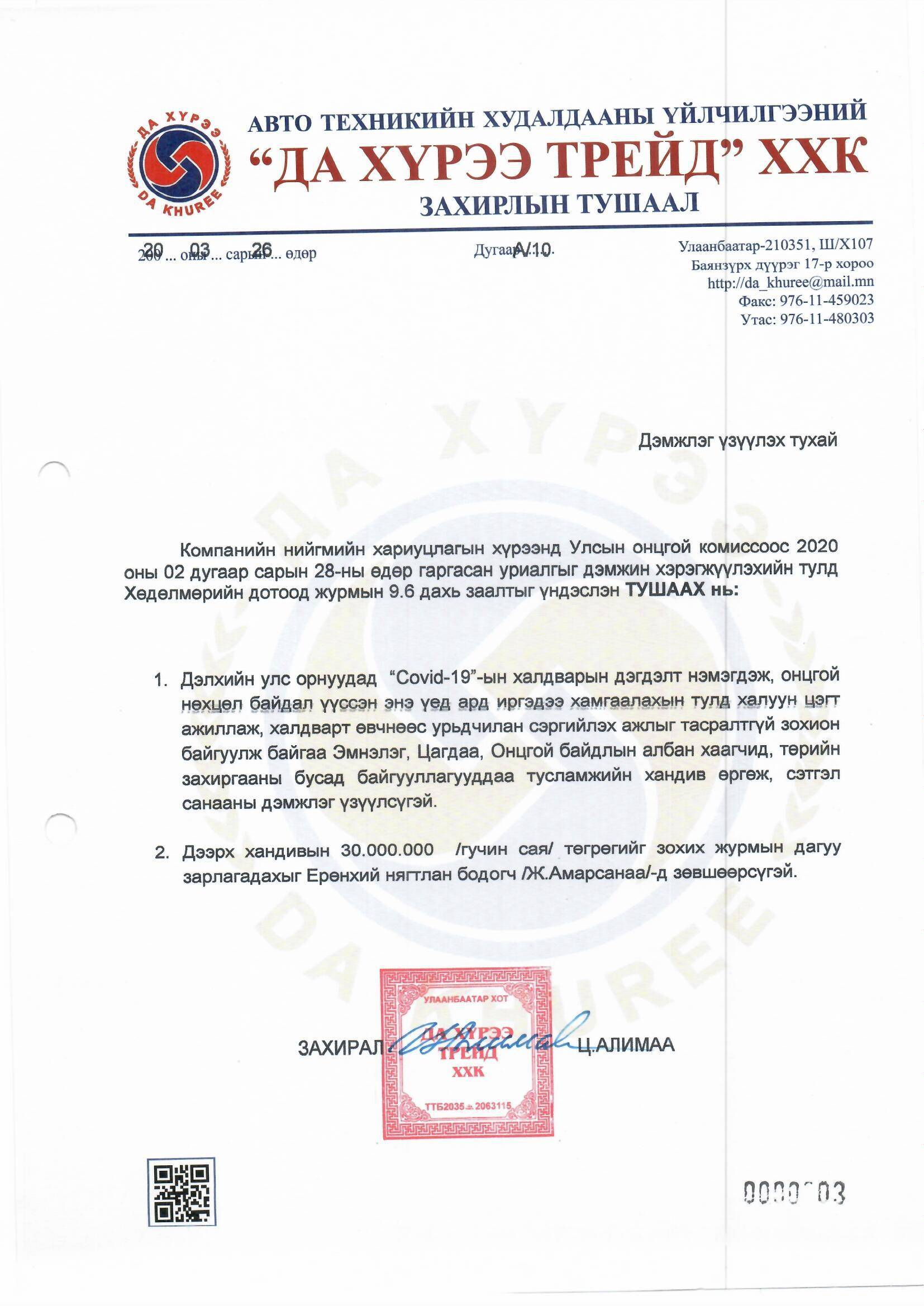 УОК-т дэмжлэг үзүүлэх тухай